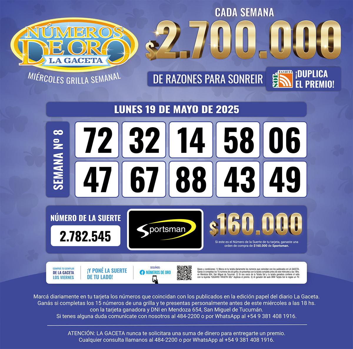 Los Números de Oro de LA GACETA del 19 de mayo de 2025