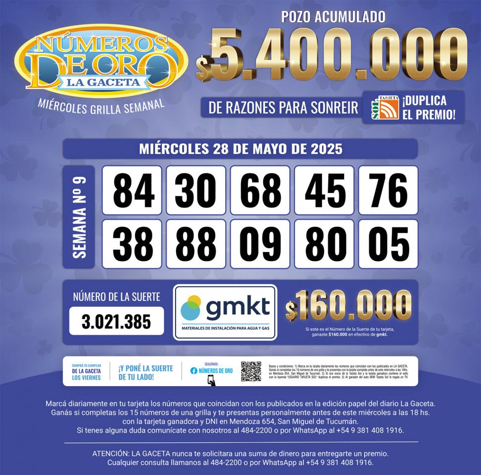 Los Números de Oro de LA GACETA del miércoles 28 de mayo