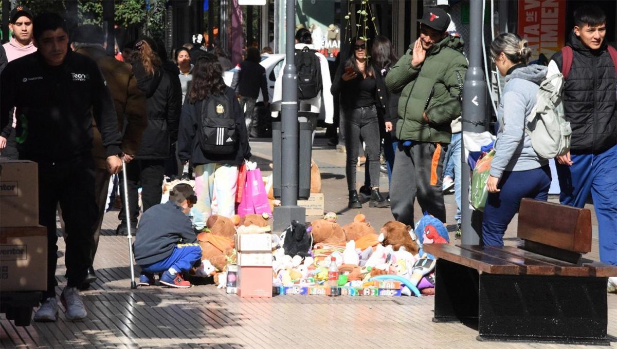 Marcelo Eduardo Rodríguez, de 44 años, recorría junto a uno de sus hijos pequeños las veredas del centro capitalino, iluminadas por el alumbrado público y las vidrieras comerciales. En el cierre de la jornada, cuando el frío se hacía sentir con más fuerza, continuaba ofreciendo pares de medias a los peatones, a quien pasara a lado. No se resignaba a volver con poco dinero en las manos. “La situación está difícil. Mi esposa cobra un plan social, pero no nos alcanza. Tengo que salir sí o sí para poder comer. Si no lo hago, no comemos. Igual, no llegamos…”, relató.
