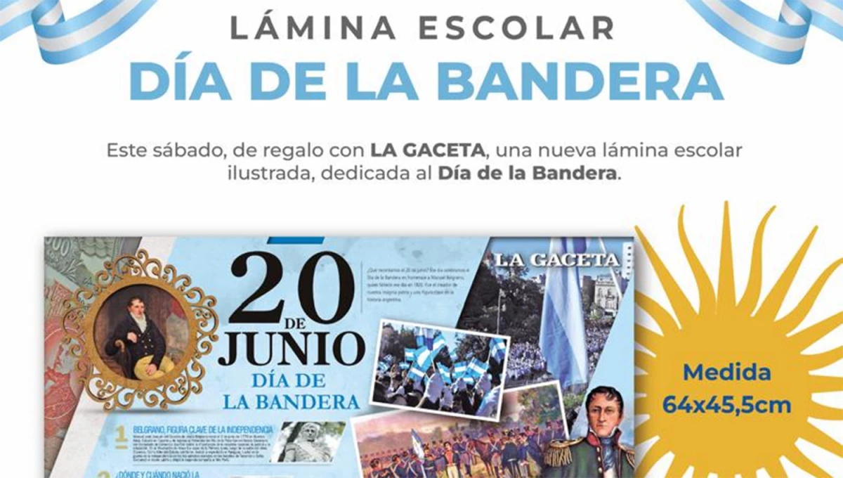 El próximo sábado 7 de junio, los lectores de LA GACETA recibirán una nueva lámina escolar ilustrada de regalo junto a su ejemplar del diario de papel. En esta ocasión, el especial está dedicado al Día de la Bandera, una fecha clave para conmemorar el legado de Manuel Belgrano, creador de nuestra enseña patria.