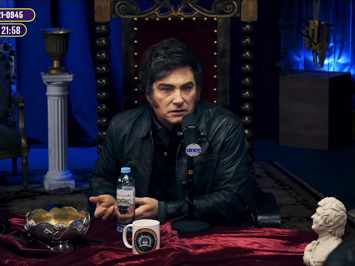 La cuenta libertaria Hombre Gris subió un dibujo en blanco y negro titulado “periodismo argento” y Milei lo compartió. En la imagen se ve un estudio de televisión con dos cámaras y a un periodista a punto de conducir un programa. En ese marco, el director le dice: “Luces, cámaras...mienta!”.