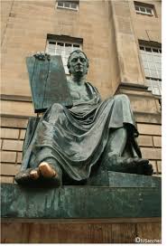 En la actualidad, una de las grandes atracciones de Edimburgo es la estatua de David Hume, que exhibe una toga romana y un pie descalzo. El dedo gordo brilla como nuevo: es que la gente hace cola para frotarlo y el hábito lo ha dejado pulido como el zapato más lustrado del mundo. Pero no sólo tiene feligreses: se le ha cuestionado una nota al pie que no brilla en absoluto. Está en un ensayo sobre “carácter de las naciones” y allí duda de la capacidad de progreso de las razas no blancas (“negros” es la palabra exacta, pero horrible). Hace unos años pareció esto un buen motivo para sacar su nombre a la torre principal de la Universidad de Edimburgo, lo cual a su vez generó grandes polémicas.