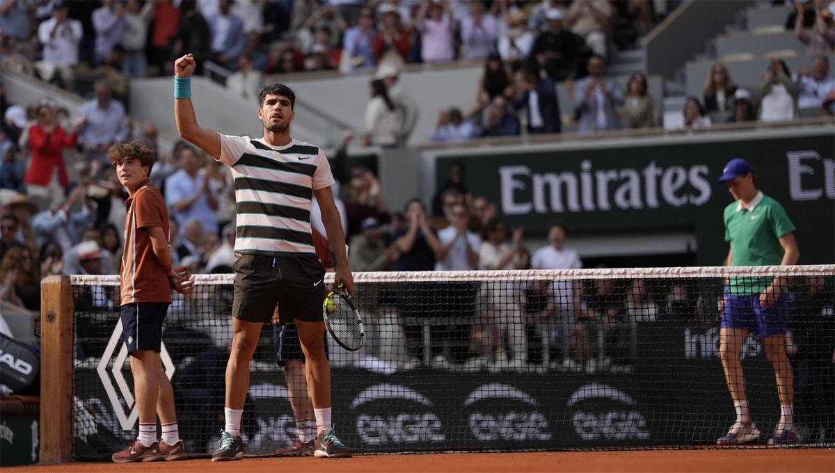 A TIEMPO. Alcaraz reaccionó cuando parecía que el partido quedaría en manos de Sinner. FOTO TOMADA DE X.COM/ROLANDGARROS
