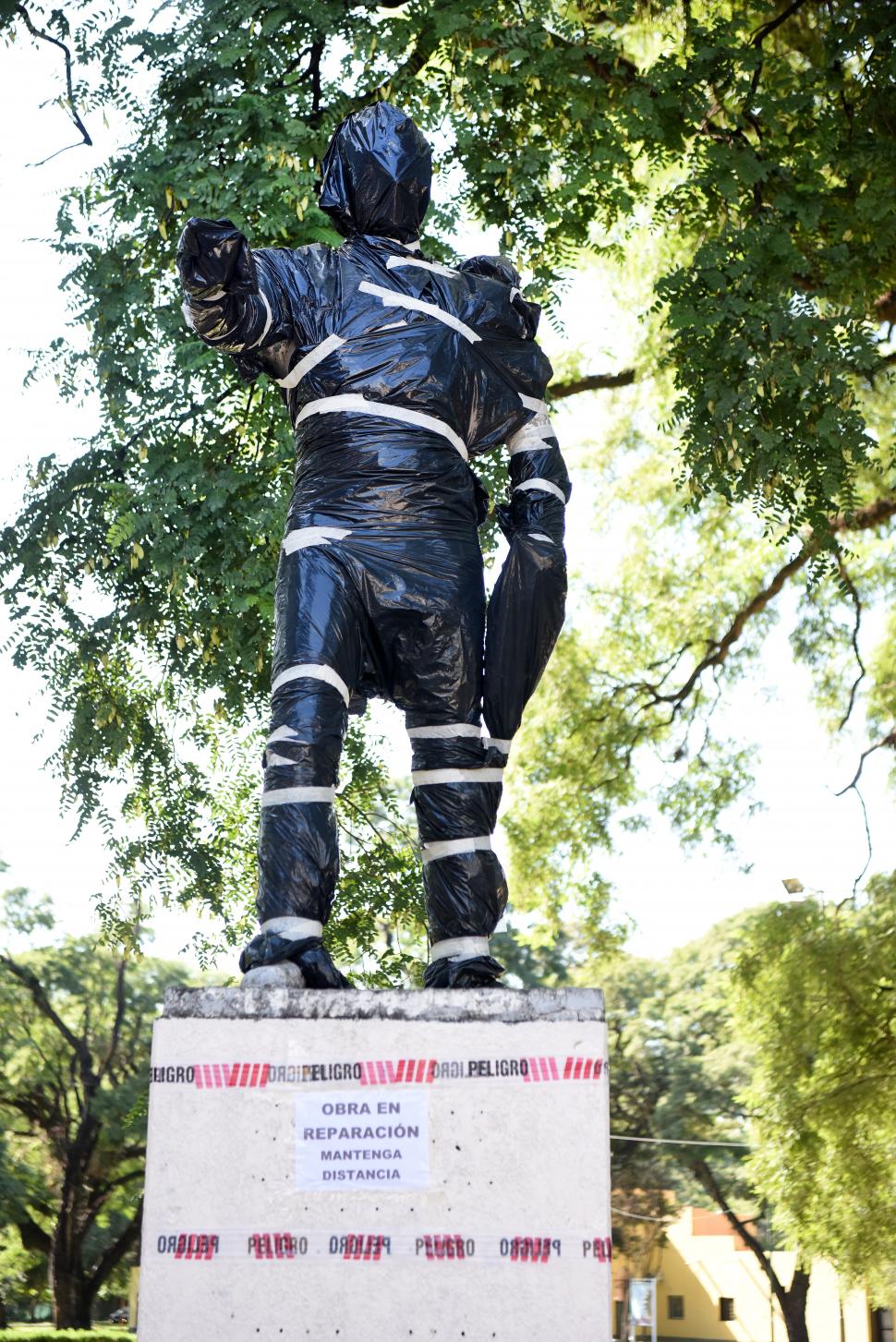EN REPARACIÓN. Una estatua de Bernabé Aráoz ubicada en el parque 9 de Julio fue restaurada en 2022.