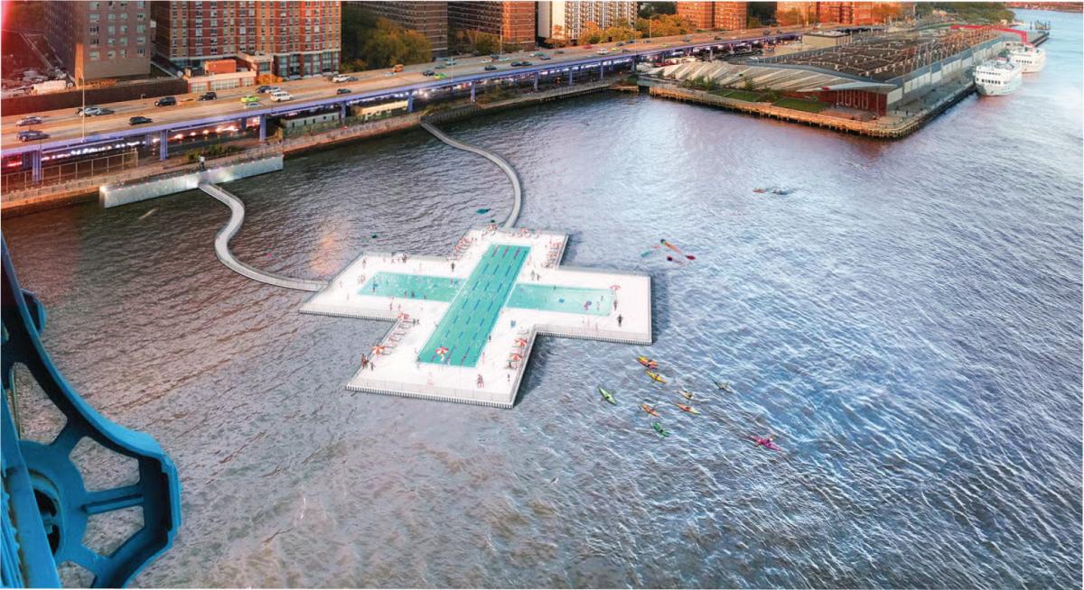 Después de 14 años de su primer anuncio y múltiples desafíos, la construcción de la “+ Pool" comenzó finalmente. Se trata de una piscina pública flotante con forma de signo "+" en el East River, en Nueva York que en un principio parecía solo un "sueño febril" como indicaron desde el sitio Curbed. El proyecto pretende filtrar el agua del río para llenar la piscina y permitir nadar en sus aguas como lo hacían los neoyorquinos en el pasado.