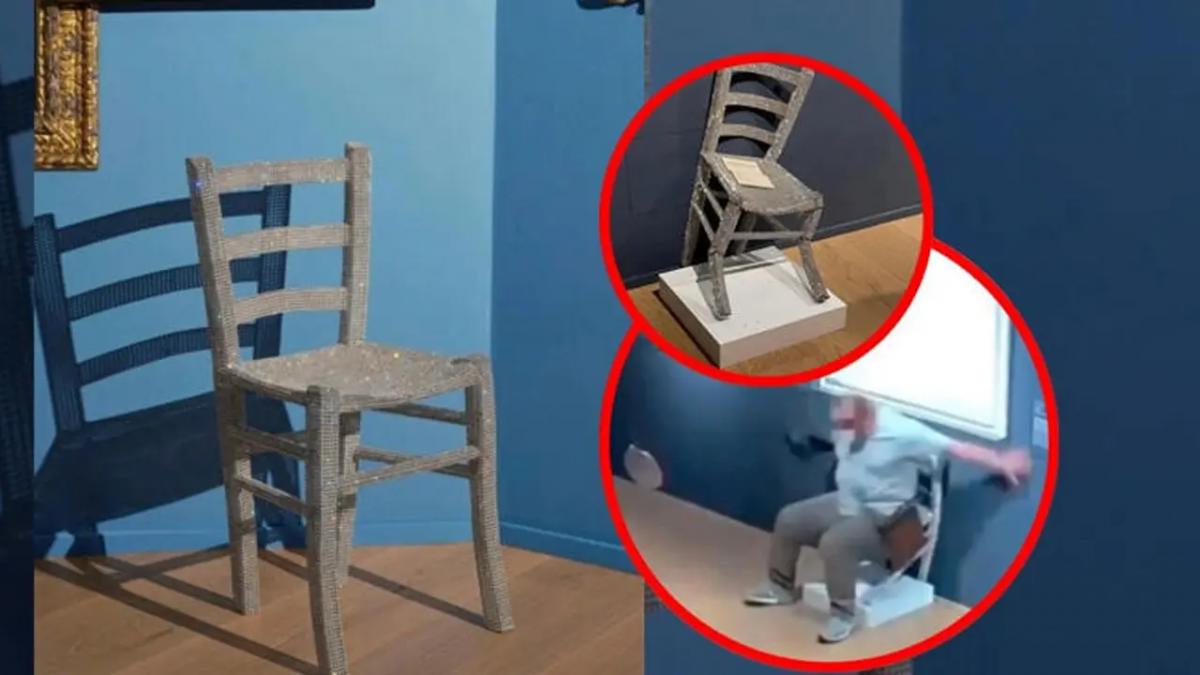 El jueves el museo publicó un video de sus cámaras de seguridad en las que aparece un turista sentado en esta obra de arte mientras una mujer le saca fotos. Al sentarse, la silla se desplomó.