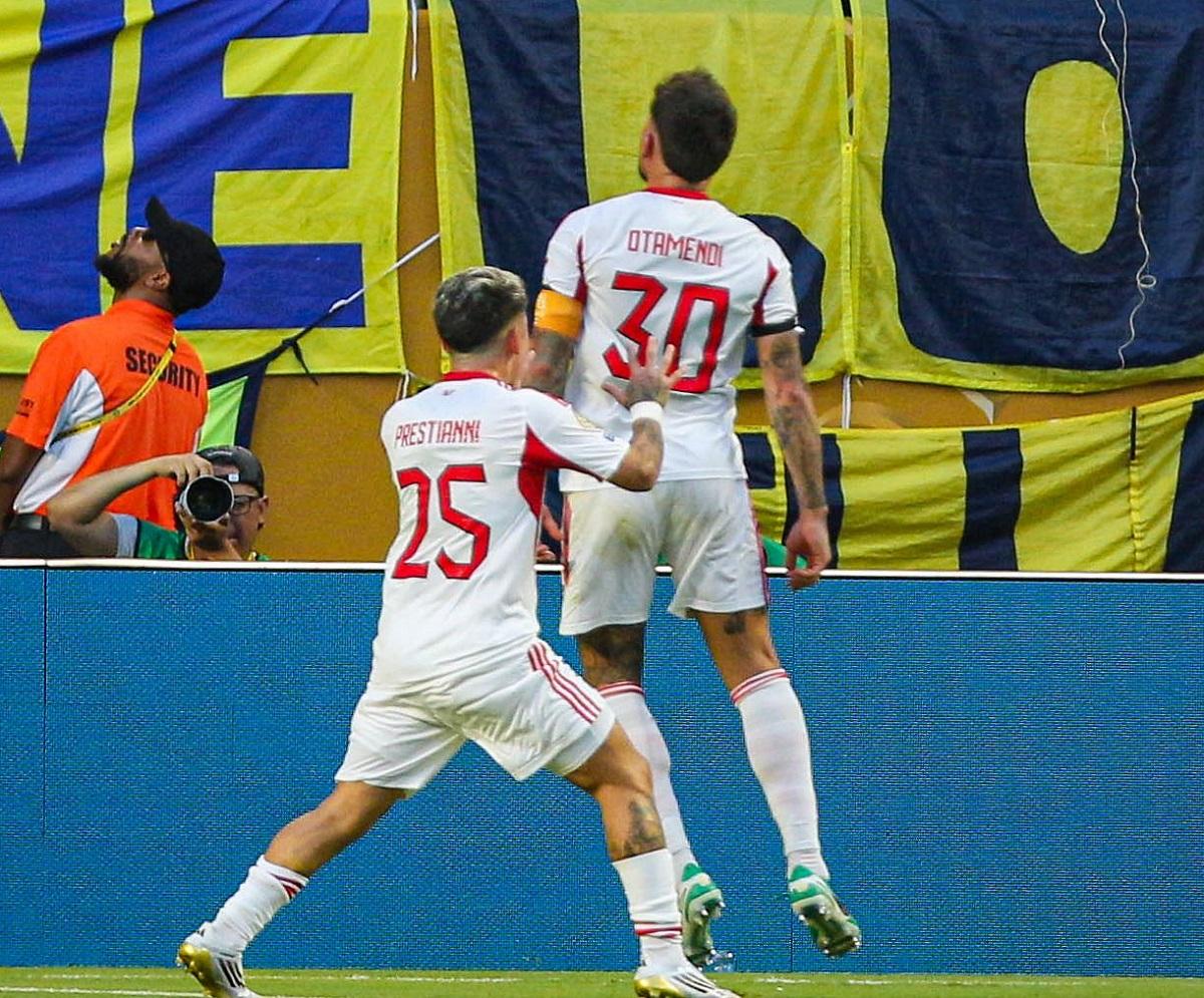 Prestianni ingresó al campo en el minuto 77 en reemplazo de Ángel Di María y no tardó en influir en el desarrollo del partido. Fue quien provocó la jugada del córner que culminó en el gol de Nicolás Otamendi, autor del empate definitivo.