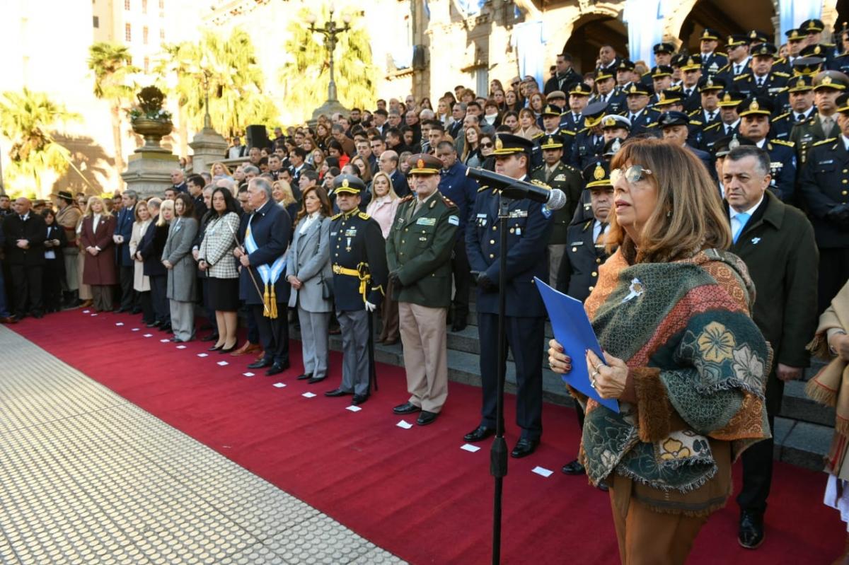 Con motivo de conmemorarse el Día de la Bandera Nacional y el 205° Aniversario del fallecimiento del general Manuel Belgrano, Osvaldo Jaldo, presidió el acto central en la explanada de Casa de Gobierno junto a la ministra de Educación Susana Montaldo.