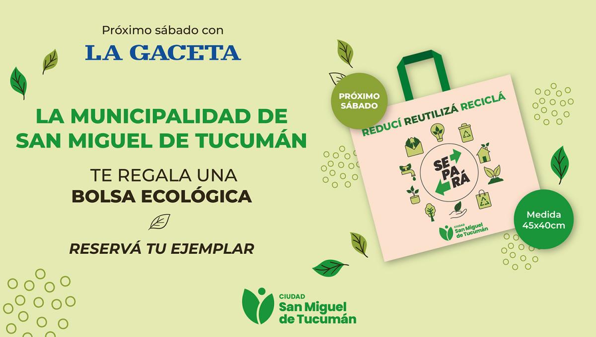 Este sábado 28 de junio, LA GACETA y la Municipalidad de San Miguel de Tucumán invitan a sus lectores a sumarse al cuidado del planeta: con la edición del diario papel se entregará una bolsa ecológica reutilizable, en el marco del Mes del Medio Ambiente.