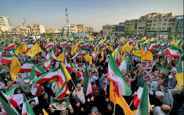 FESTEJOS. Banderas y cantos contra Israel y Estados Unidos reflejaron el alivio en Teherán por la frágil tregua.
