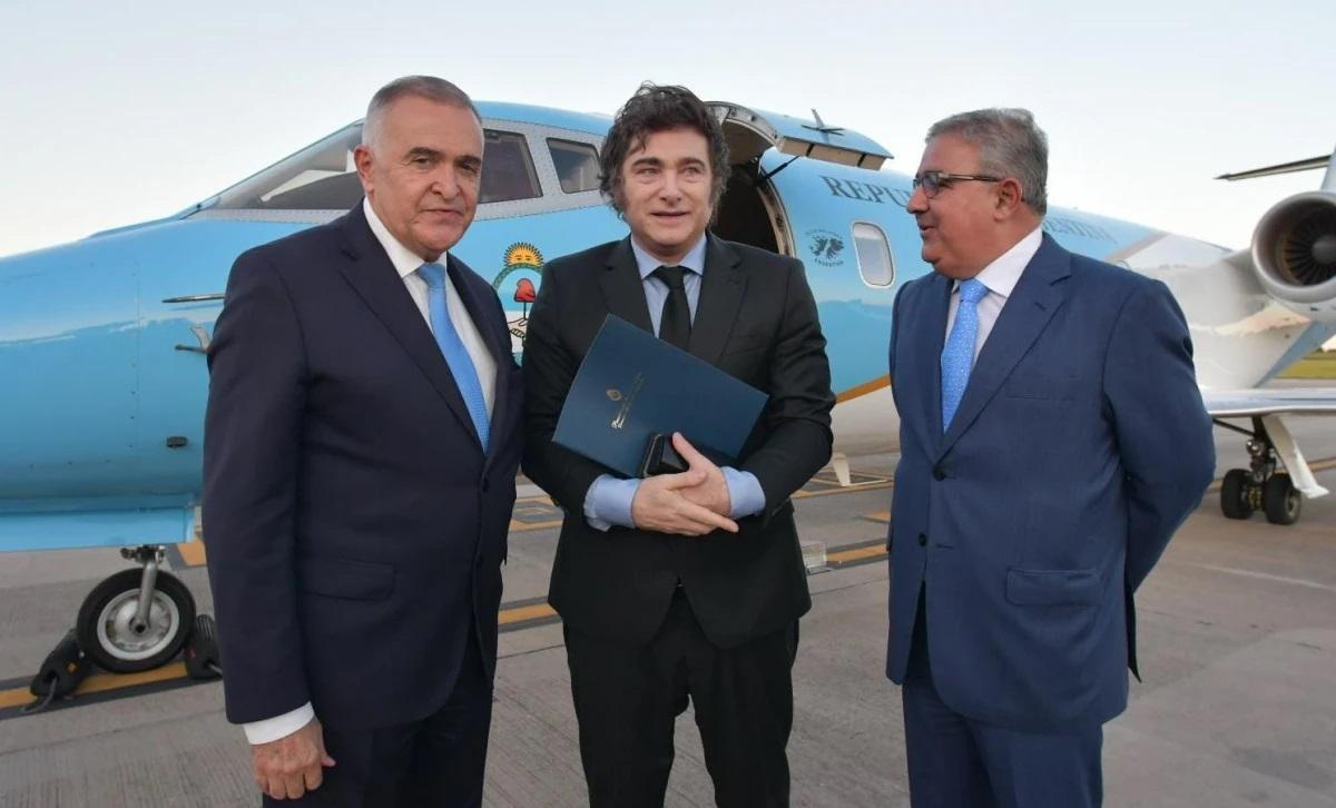 MILEI EN TUCUMÁN. El Presidente fue recibido en diciembre pasado por Jaldo y por el catamarqueño Jalil. Foto de archivo