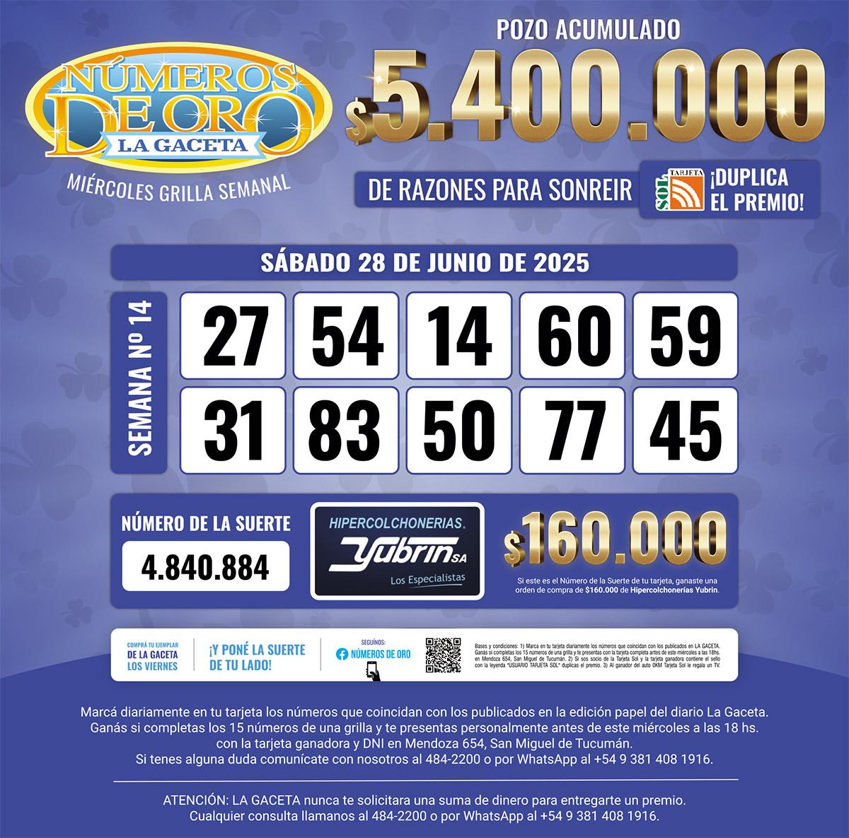 Los Números de Oro de LA GACETA del 28 de junio de 2025
