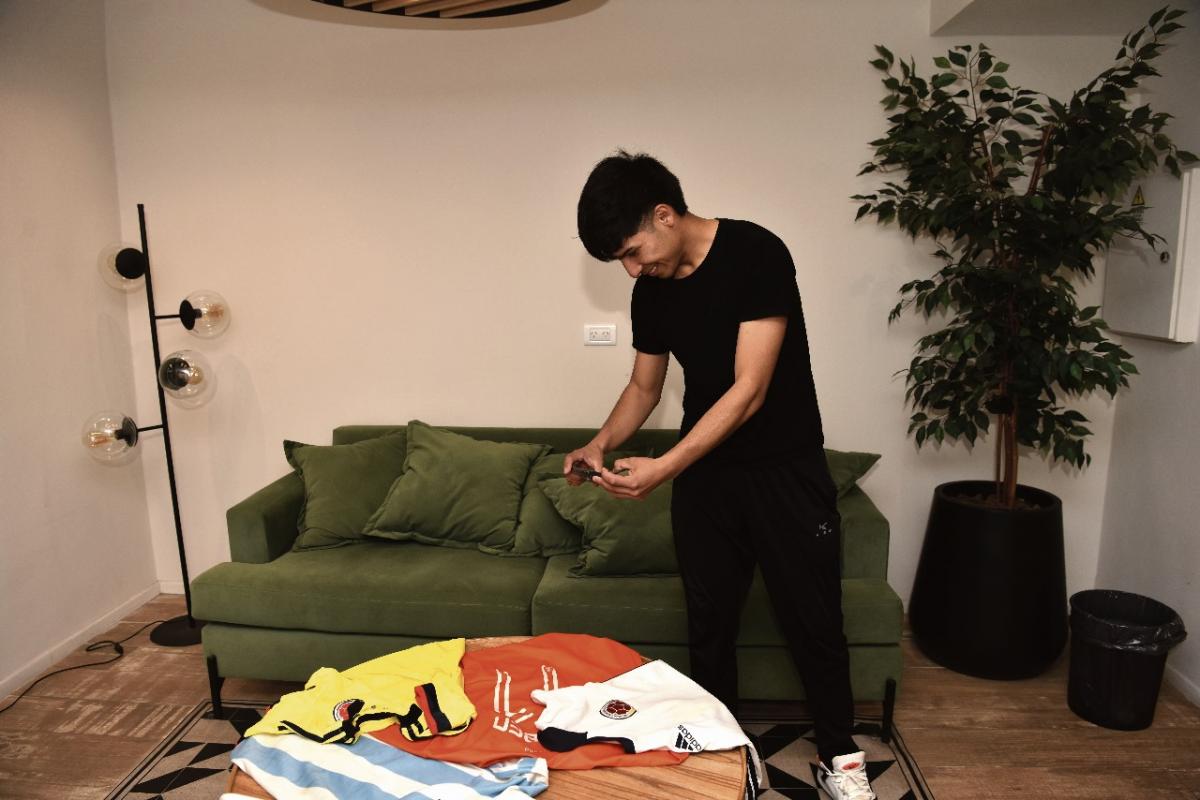RECUERDOS. Los clubes suelen regalarle las camisetas cuando Chon va a generar contenido. FOTO DE OSVALDO RIPOLL