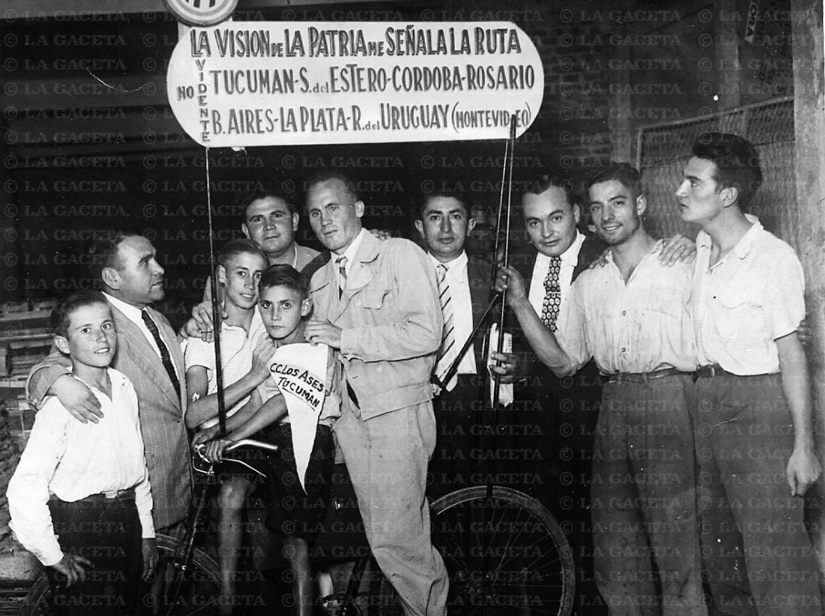 Eduardo D. Morales había comenzado a perder la vista en 1944 y abandonó su pasión por las caminatas y el ciclismo, abrumado por su destino. Pero un año después su temple extraordinario -tal como relata la crónica de LA GACETA- lo llevó a hacer, ya totalmente ciego, una caminata a pie, con bastón, hasta Buenos Aires, donde entrevistó al mismo presidente, Juan Domingo Perón, “quien dispuso que se le hiciera la concesión de un surtidor de nafta” para que pudiese vivir cómodamente. La inquietud del raidista siguió latente: el 3 de diciembre de 1949 se publicó esta foto, que seleccionó Gustavo Grupalli, y en la nota se cuenta que, con el auspicio del club Los Ases, Morales emprendería un raid en bicicleta hasta Montevideo, llevando sentado en la parte delantera a su hermanito Arturo Enrique Morales, de 11 años, que como guía le iba a ir indicando el camino.