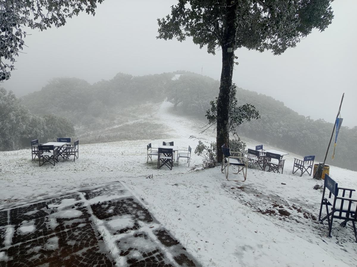 Una capa blanca de nieve cubrió esta mañana a gran parte de la zona de San Javier. Las bajas temperaturas provocaron este fenómeno en los alrededores del Cristo, en la hostería y en el predio de Loma Bola, donde se practica parapente.