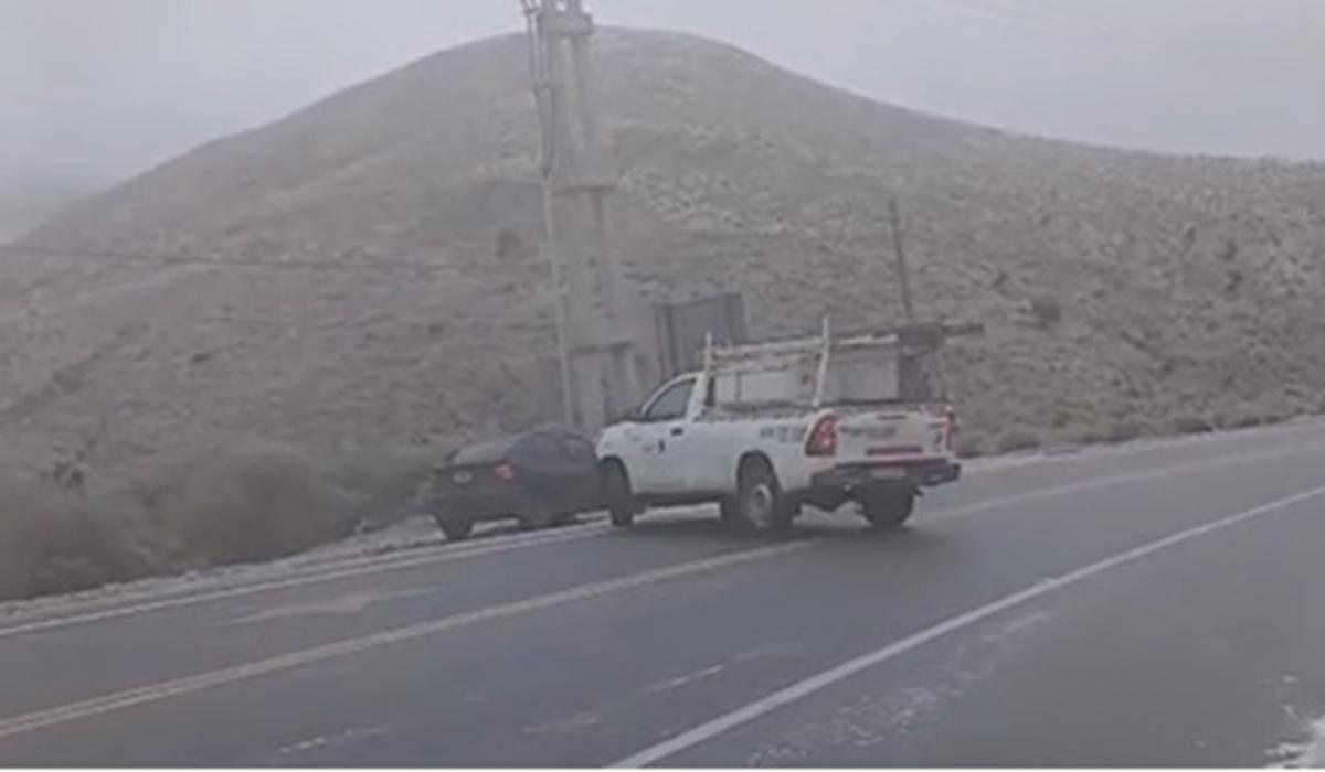 Este lunes, una camioneta se deslizó varios metros sobre la congelada ruta 307, en el tramo que va de Tafí del Valle a El Infiernillo.