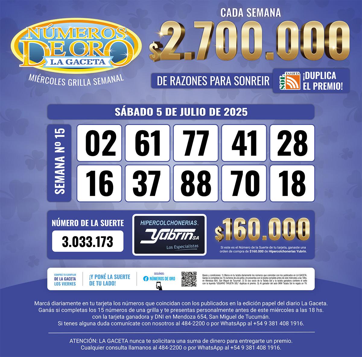 Los Números de Oro de LA GACETA del 5 de julio de 2025