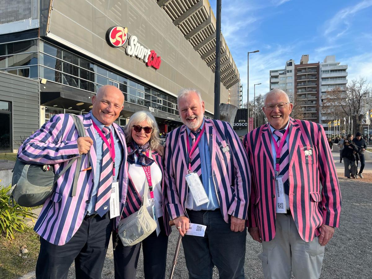 Con trajes rayados rosa y azul, no hay forma de que pasen desapercibidos. Pero no se los nota solo por eso: también por la energía que irradian, las carcajadas que sueltan cada tanto y las fotos que todos les piden. Son Paul, Debbie, James y Pevency, parte de los Silver Hippos, un traveling rugby club de exjugadores que siguen a Inglaterra por el mundo.