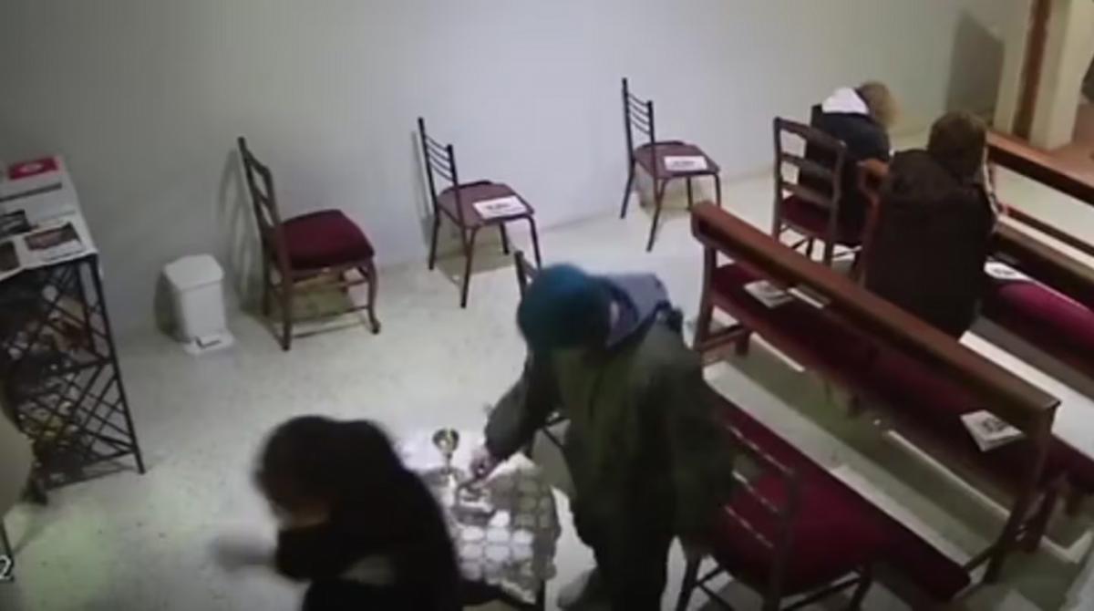Un hombre entró a una Iglesia, participó de la misa y le robó a una mujer que estaba arrodillada rezando. Toda la secuencia quedó registrada por las cámaras de seguridad del lugar.