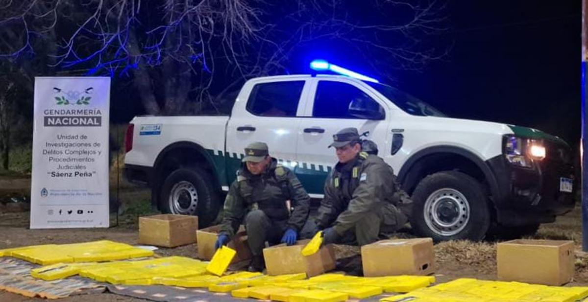 Al detener la marcha de ambos vehículos, los gendarmes inspeccionaron el semirremolque del camión y detectaron un habitáculo oculto en el piso del mismo, donde se hallaban siete bultos grandes dimensiones (tipo cajas) que contenían 165 paquetes rectangulares característicos a los utilizados para el traslado de estupefaciente.