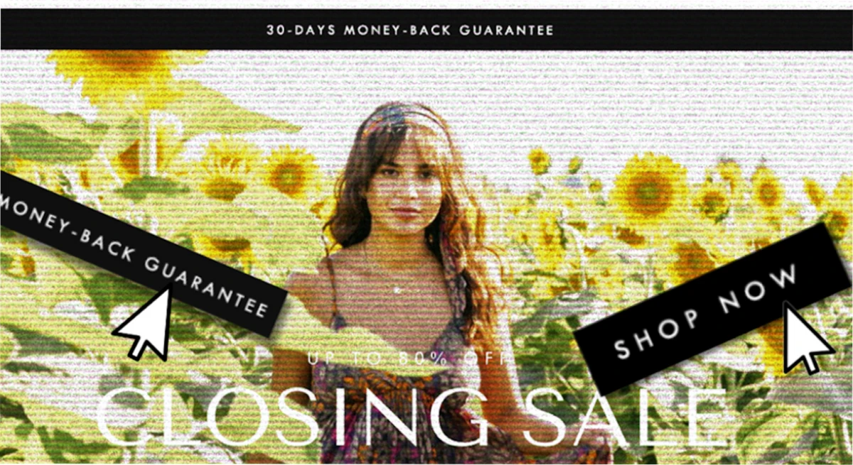 Narrativa: La narrativa puede influir en las emociones de los compradores y afectar su compra. Ayuda a fomentar conexiones emocionales más profundas con una marca. Las tiendas fantasma suelen crear una narrativa sobre la "quiebra" para justificar descuentos y conmover a los consumidores.