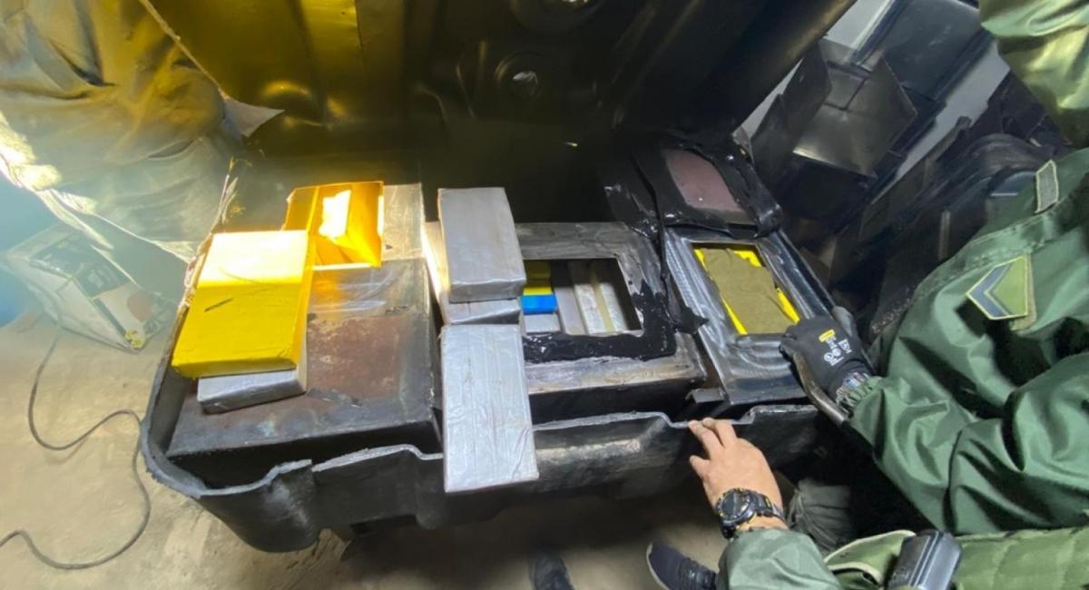 Además del estupefaciente, se secuestró una camioneta Ford Ranger, los cuatro tanques modificados, un grupo electrógeno, una soldadora, dos patentes del Estado Plurinacional de Bolivia y otros elementos de interés para la investigación.