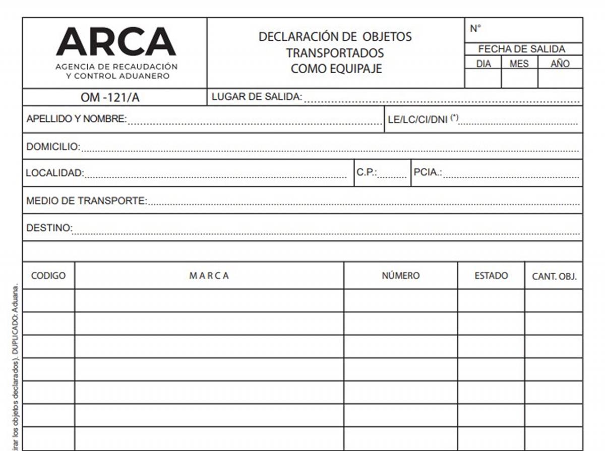 El formulario OM‑121, también llamado declaración de objetos transportados como equipaje, tiene un propósito simple y claro: evitar que la Aduana considere ciertos bienes como compras nuevas al volver a Argentina. Se completa antes de salir del país y sirve como prueba de que determinados objetos ya estaban en poder de sus titulares.