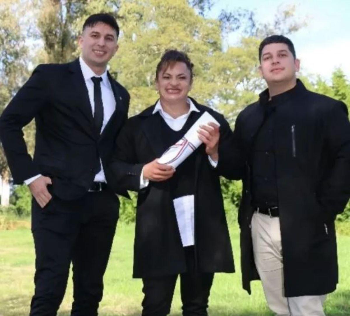 EN FAMILIA. Alejandro y Alexis, los hijos de Oliveras, junto a su madre durante una disitinción.
