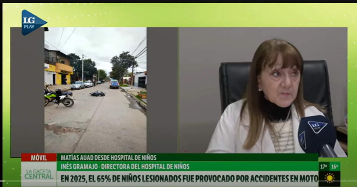 La directora del Hospital de Niños, Inés Gramajo, dialogó con LA GACETA Central, de LGPLAY brindó un parte médico y alertó sobre una cifra que debería encender todas las alarmas: en lo que va del 2024, el hospital recibió 616 niños heridos por siniestros viales, de los cuales 411 viajaban en moto, es decir, el 66%.