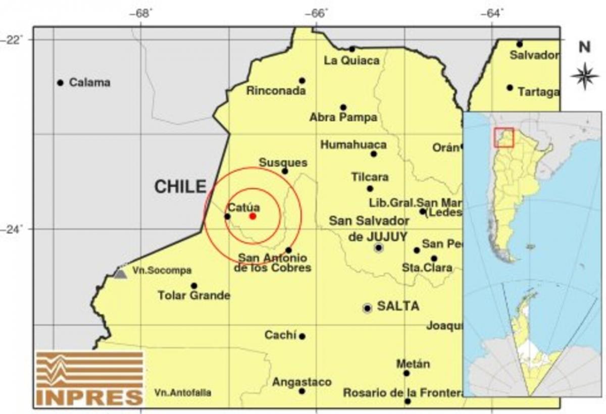 Por su parte, el Instituto Nacional de Prevención Sísmica (INPRES) indicó que a 200 kilómetros de profundidad, se produjo un temblor de magnitud 4,6 con epicentro en la localidad de Susques, provincia de Jujuy. El sismo fue levemente percibido por vecinos de localidades cercanas, pero no se reportaron daños ni evacuaciones.