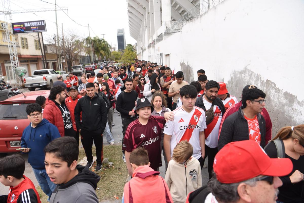 Mientras hacían fila para retirar sus entradas, los fanáticos entonaban una de las canciones más emblemáticas del cancionero riverplatense. “Al Millonario lo sigo a todos lados, yo dejo todo por ver al tricampeón, por eso River, aunque ganes o pierdas, no me importa una mierda, yo siempre voy con vos”, se escuchaba una y otra vez, entre abrazos y festejos anticipados. Las entradas se habían gestionado días atrás a través de la plataforma Deportick, pero la emoción por tenerlas en mano generó una fila que daba vuelta toda la manzana del estadio de Central Córdoba.