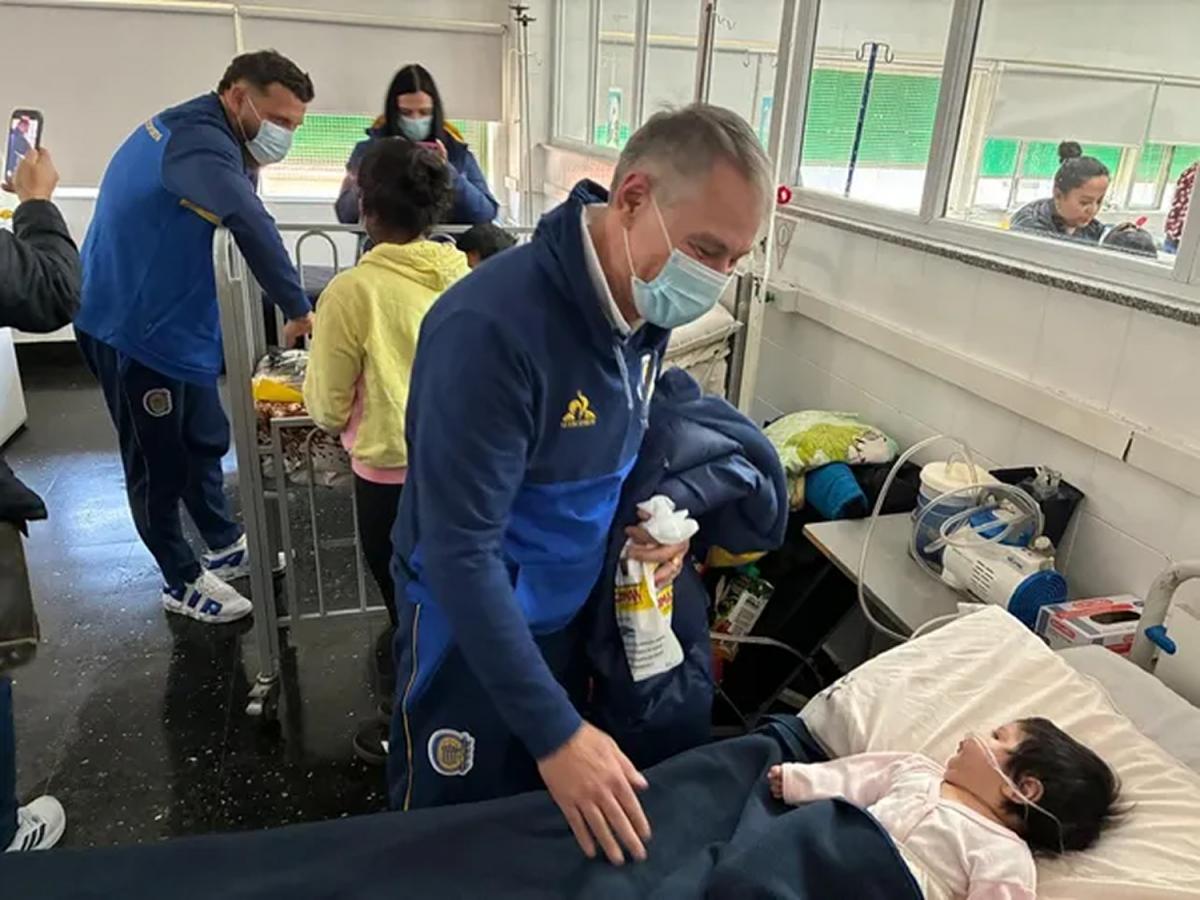 Después, dirigentes, jugadores y cuerpo técnico recorrieron las salas donde los niños permanecen internados. Allí, entre charlas, fotos y abrazos, entregaron los obsequios preparados.