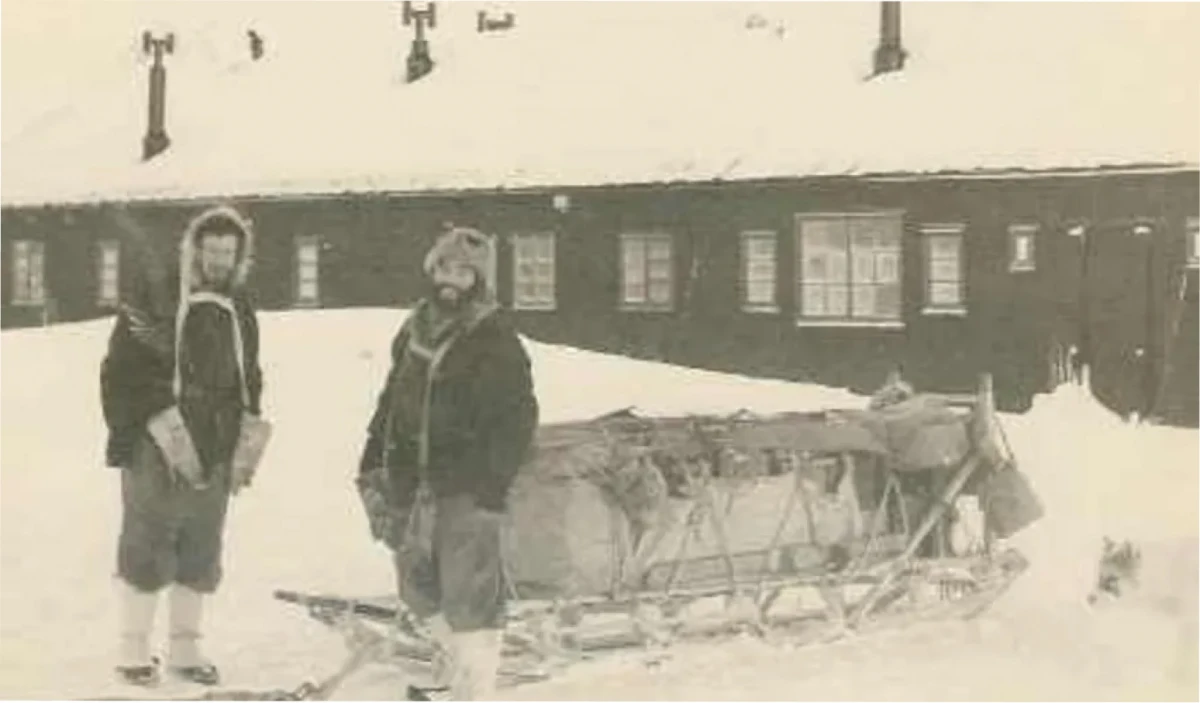 Los hombres de la base de la isla Rey Jorge dependían de trineos y perros para desplazarse por el duro terreno. Russell Thompson/BBC News