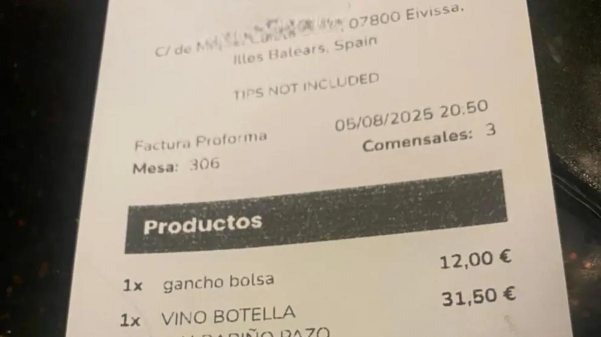 El verano en Ibiza no solo trae sol, playas y fiestas, sino también historias que acaban generando un gran revuelo en redes sociales. La última en viralizarse es la de Laura, una usuaria de X (antes Twitter), que denunció haber recibido un cargo inesperado en la cuenta tras comer en un restaurante de la isla: 12 euros por el uso de un “gancho bolsa” para colgar su bolso.