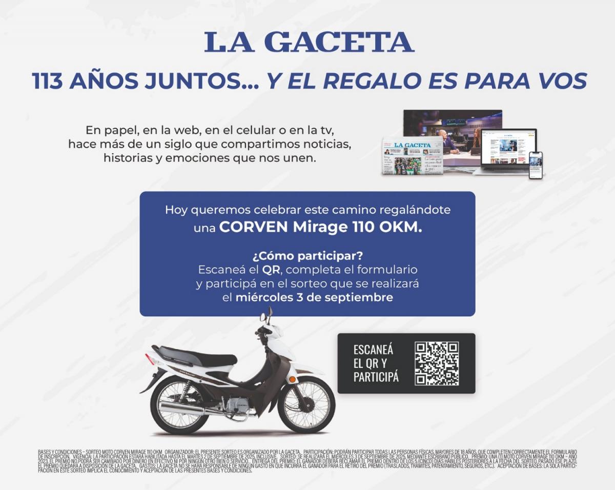Durante más de un siglo, LA GACETA ha acompañado a generaciones de tucumanos y lectores de toda la región, informando con excelencia, integridad y compromiso. Hoy, esta trayectoria se celebra con un obsequio que combina estilo, movilidad y libertad. ¿Cómo participar?