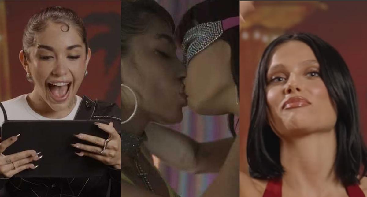 La producción de Netflix puso a disposición de las actrices el pequeño recorte en que se besan. Automáticamente al agarrar la tablet en la que lo reprodujeron, Becerra lo reconoció: “¡Esta es la escena del chape!”, soltó liviana y jocosa. Aunque las reacciones se filmaron por separado, el resultado de la unión fue una joya que los espectadores pudieron apreciar.