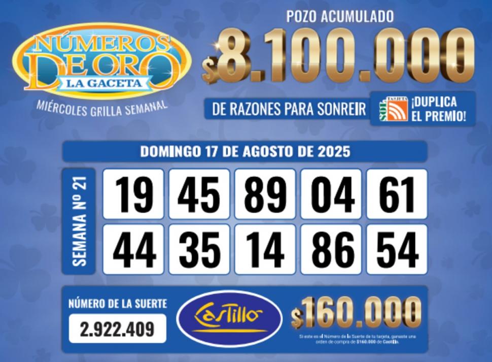 Los Números de Oro de LA GACETA del 17 de agosto de 2025
