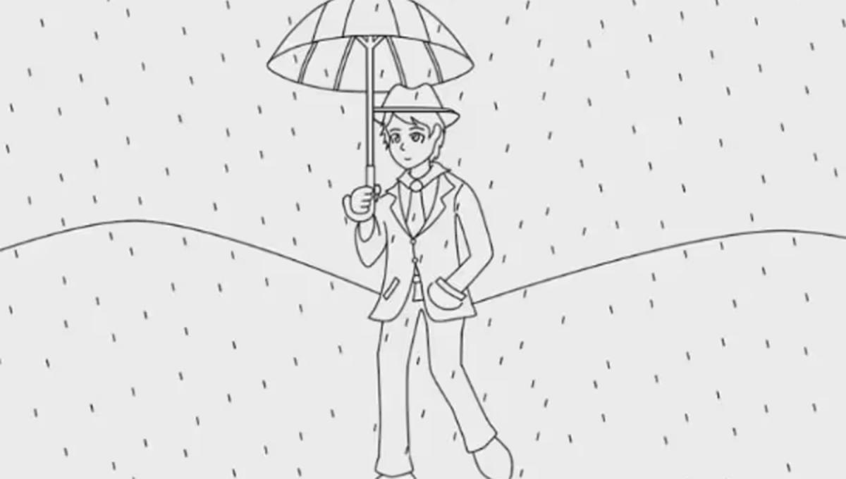 ¿Cómo dibujar una persona debajo de la lluvia durante una entrevista laboral?