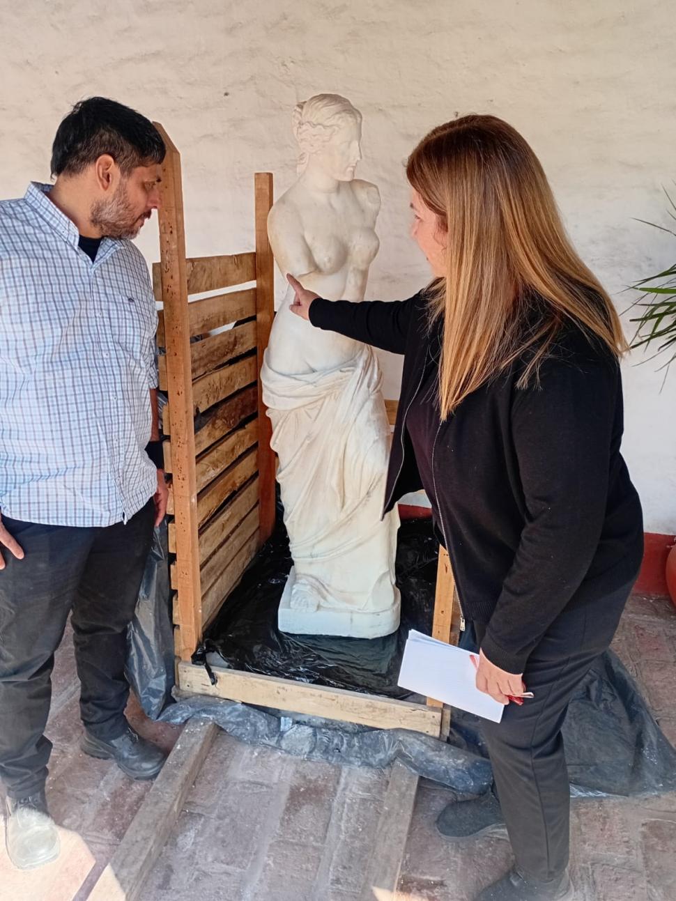 PROTAGONISTAS. Sánchez y Fagalde van describiendo la recuperación de dos esculturas: a la izquierda, la Venus de Milo; a la derecha, el Apolo. la gaceta / fotos de guillermo monti - gentileza m.e. fagalde