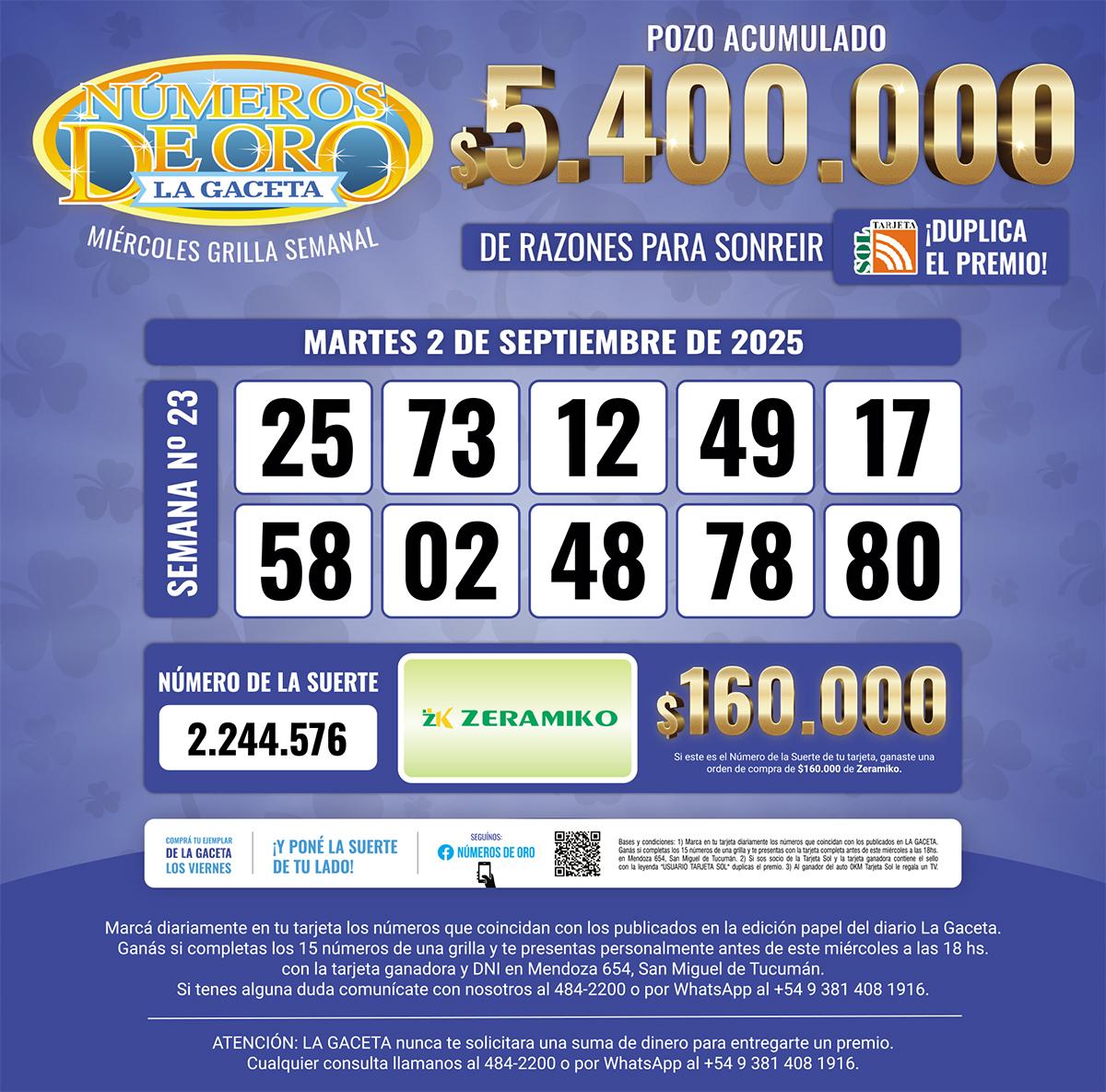 Los Números de Oro de LA GACETA del 2 de septiembre de 2025