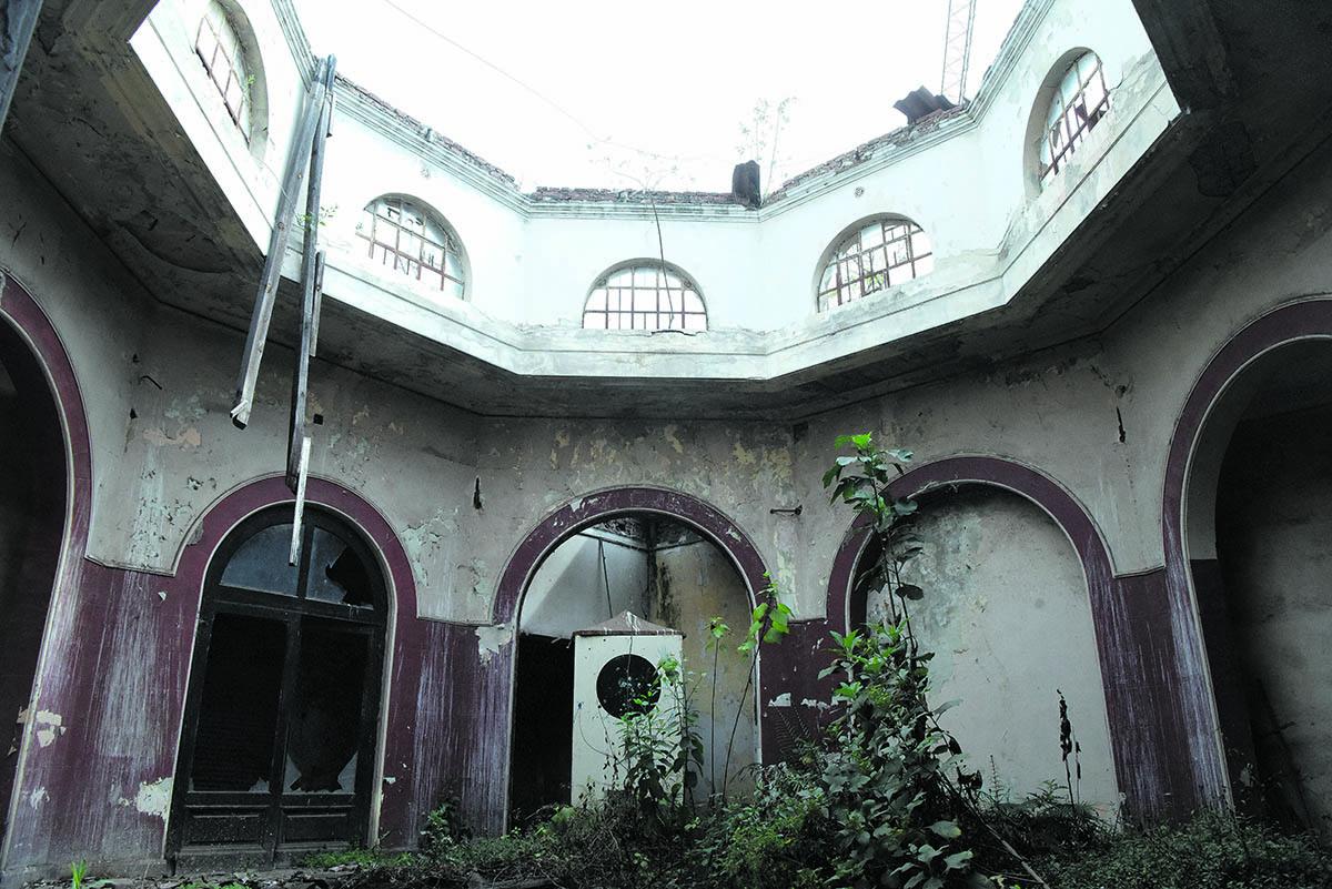 El recorrido por el interior genera una mezcla de tristeza y de impotencia. Y de enorme sorpresa al acceder a lo que fue el hall central, un espacio que permite vislumbrar retazos de ese pasado virtuoso. La estructura se mantiene, incluso la garita de la guardia, pero el techo se desmoronó y las tejas quedaron en el piso, entreveradas con arbustos que van imponiendo su follaje. Mientras, un gatito deambula por las habitaciones, buscando alguna presa.
