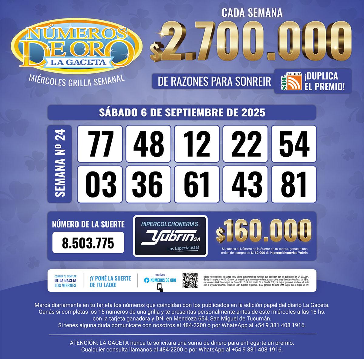 Los Números de Oro de LA GACETA del 6 de septiembre de 2025