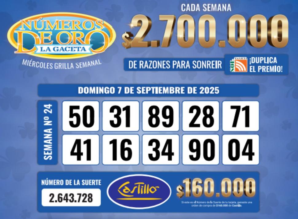 Los Números de Oro de LA GACETA del 7 de septiembre de 2025