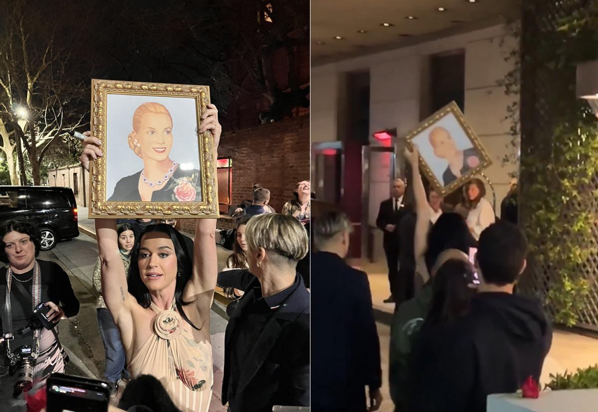Una de las fanáticas de la artista le regaló un enorme cuadro con el rostro de Eva Perón. Katy Perry reconoció enseguida de qué se trataba y alzó el cuadro para que toda la multitud que la rodeaba pudiera verlo. En torno a ella, sus seguidores empezaron a corear “Viva Perón” al ritmo de la Marcha Peronista.
