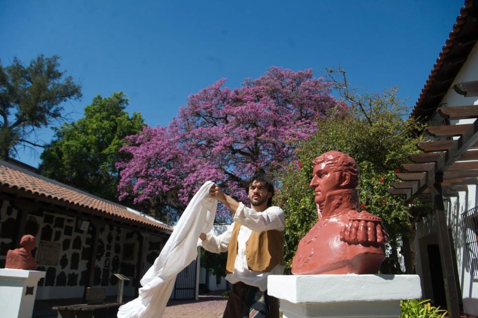 La cercanía de la primavera se vive a pleno en el “patio de las placas” de la Casa Histórica. La siesta es a pleno sol, con un formidable lapacho rosado oficiando de manto protector sobre el equipo de “Latido en piedra”. Están ensayando la obra que esta tarde podrá verse allí mismo, con entrada libre y gratuita; un tributo a la memoria de Bernabé Aráoz con un condimento extra: la inauguración -en vivo- de un busto del prócer.