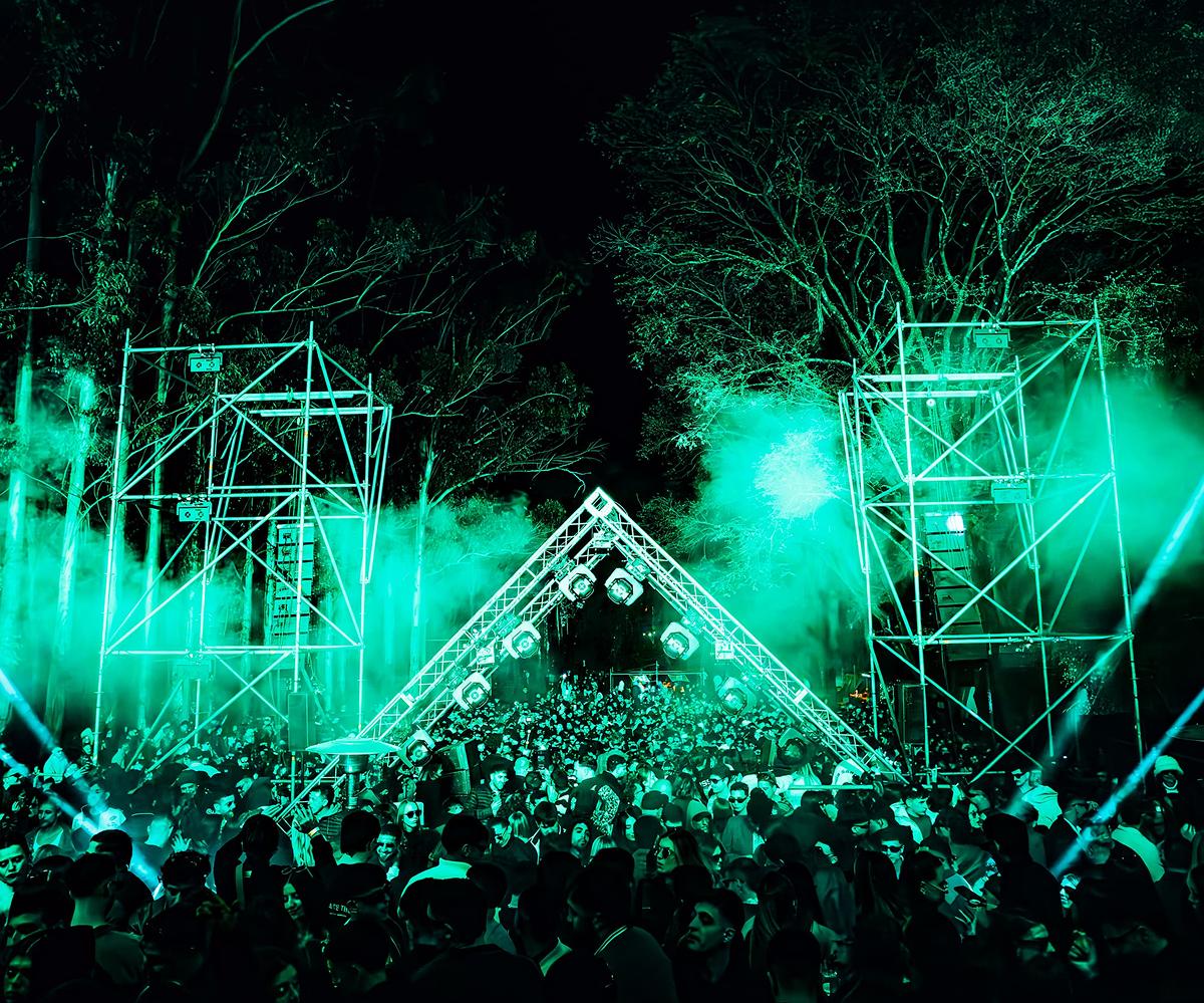 El bosque no fue un simple telón de fondo: los asistentes lo sintieron como parte viva del show. Los organizadores diseñaron un espacio envolvente que integraba naturaleza, visuales y sonido, generando un clima cercano al de los festivales internacionales.