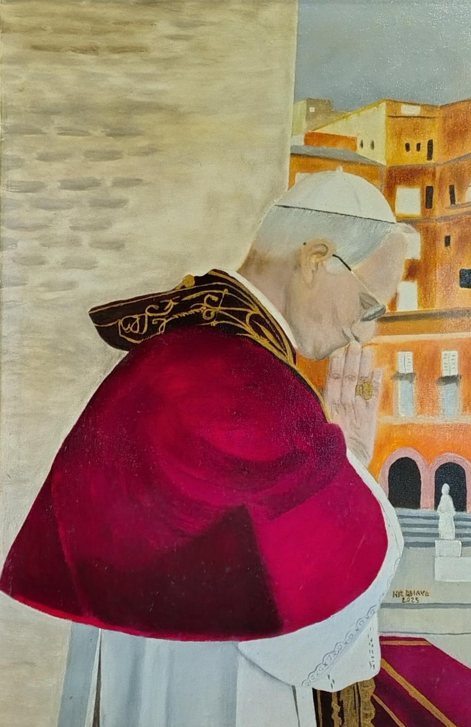 TRIBUTO AL PAPA. Héctor Amaya retrató a León XIV.