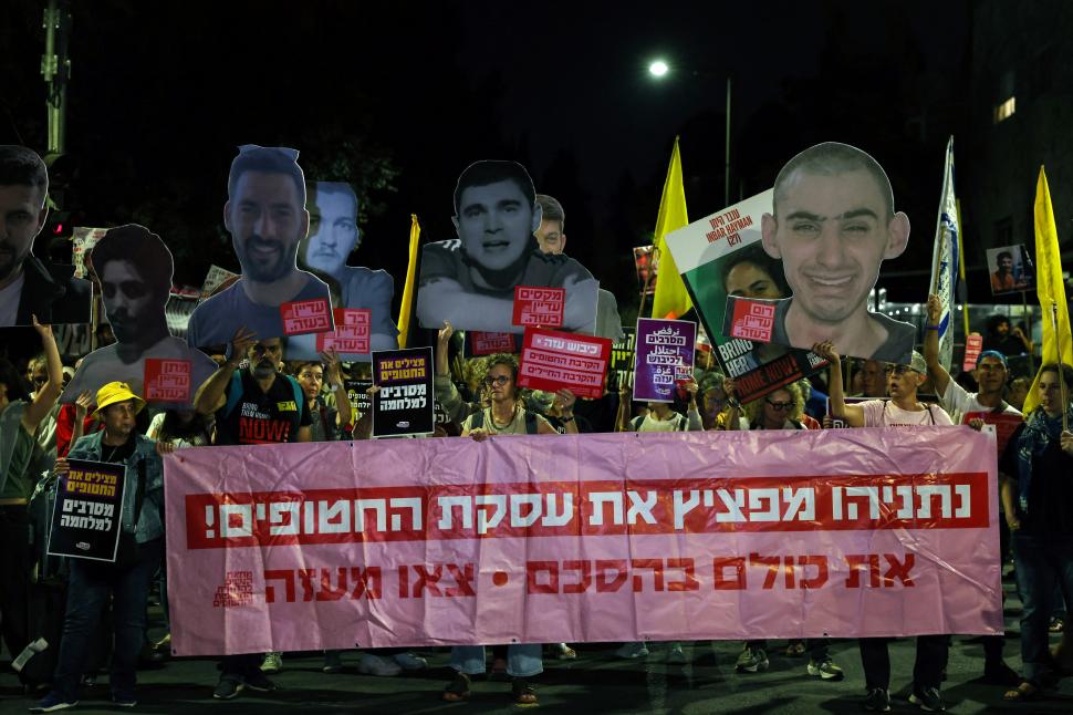 RECHAZO INTERNO. Familiares y allegados de rehenes israelíes reclaman, en Jerusalém, al gobierno de Netanyahu que ponga fin a la guerra,