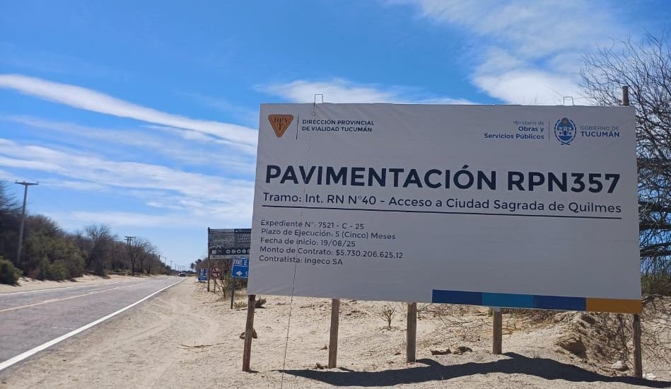La ruta provincial 357 conduce a la Ciudad Sagrada de Quilmes a lo largo de un tramo enripiado de 3,4 kilómetros. El Gobierno dispuso la pavimentación de ese trayecto y la Dirección Provincial de Vialidad (DPV) adjudicó la obra a la firma Ingeco a un costo de poco más de 5.700 millones de pesos, dato corroborado por la cartelería instalada a la vera del camino. Los trabajos se iniciaron, pero a partir de una denuncia se comprobó que no se habían efectuado los estudios de impacto arqueológico, imprescindibles para proteger el riquísimo legado patrimonial que guarda la zona. Tomó cartas en el tema el Colegio de Arqueólogos de Tucumán y la pavimentación se suspendió, con acuerdo de la DPV y de la empresa contratista, hasta que se completen los estudios correspondientes.
