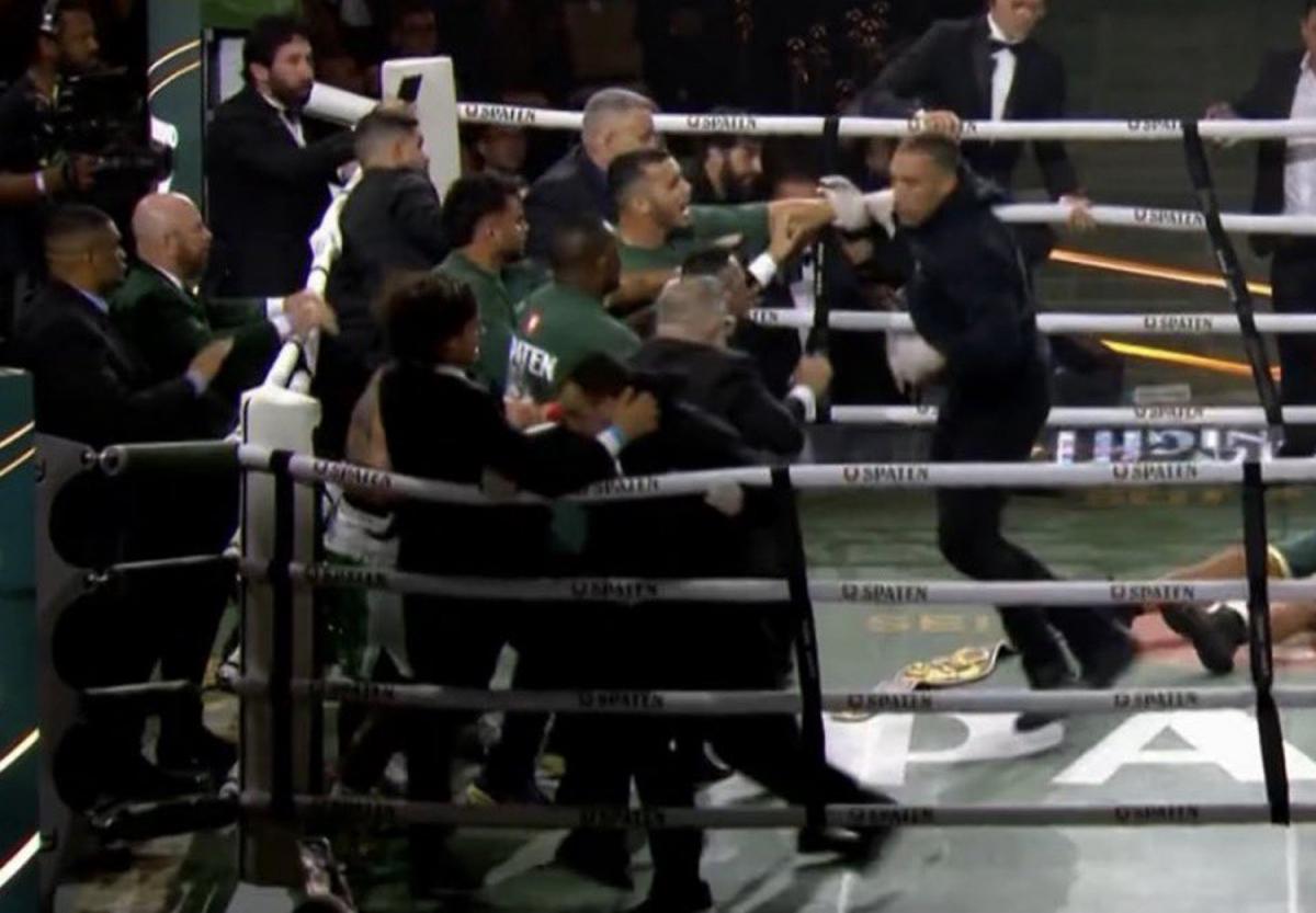 La reacción del equipo de Silva fue furiosa. La protesta derivó en un enfrentamiento campal entre las esquinas, con empujones, trompadas y hasta patadas. En medio del tumulto, el propio Silva recibió un golpe que lo dejó noqueado, aumentando la tensión en un estadio desbordado.